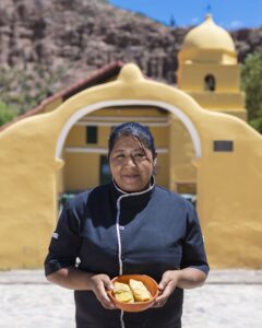 Te invitamos a probar las empanadas, tamales y humitas, las sopas y picantes, el locro, la calapurca, la tijtincha y el mote con chicharrón. Los ajíes, la miel de caña, el charqui, el anchi, la mazamorra, las capias, las nueces y el maní. Las papas, maíces y quinoas multicolores. Las ocas, los ollucos, el chuño y la tunta. La sal de nuestros salares, el cayote, la quirquiña, la rica rica, muña muña, manzanilla, las rosas y la flor del cardón, el api y la algarroba. Los cítricos, frutas tropicales de las selvas, el chilto, el quesillo y el queso de cabra, el patay, el arrope de tuna y de chañar, la albahaca, el comino, el pimentón y la pimienta de molle. Los dátiles, las olivas y su aceite. La llama, el cabrito y el cordero. El aroma de las tortillas recién salidas del horno de barro, los fogones y sus leñas, los ahumados, el rescoldo y las ollas de barro que contienen los secretos de esta tierra milenaria.