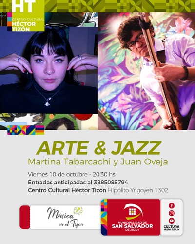 “Arte & Jazz” es una propuesta musical en formato dúo, con la particularidad de estar integrado por una voz (Martina Tabarcachi) y un bajo eléctrico (Juan Oveja), los cuales desarrollarán un repertorio de jazz y música latinoamericana, cuidando los sonidos y a su vez jugando con los silencios, inmersos en el profundo mar de la armonía jazzística…
