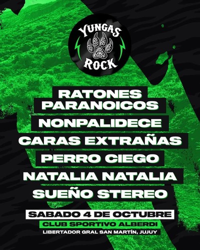 Llega a Jujuy el Yungas Rock con las bandas mas destacadas del momento, actuarán: Ratones Paranoicos – Nonpalidece – Caras Extrañas – Perros Ciego – Natalia Natalia – Sueño Stereo.