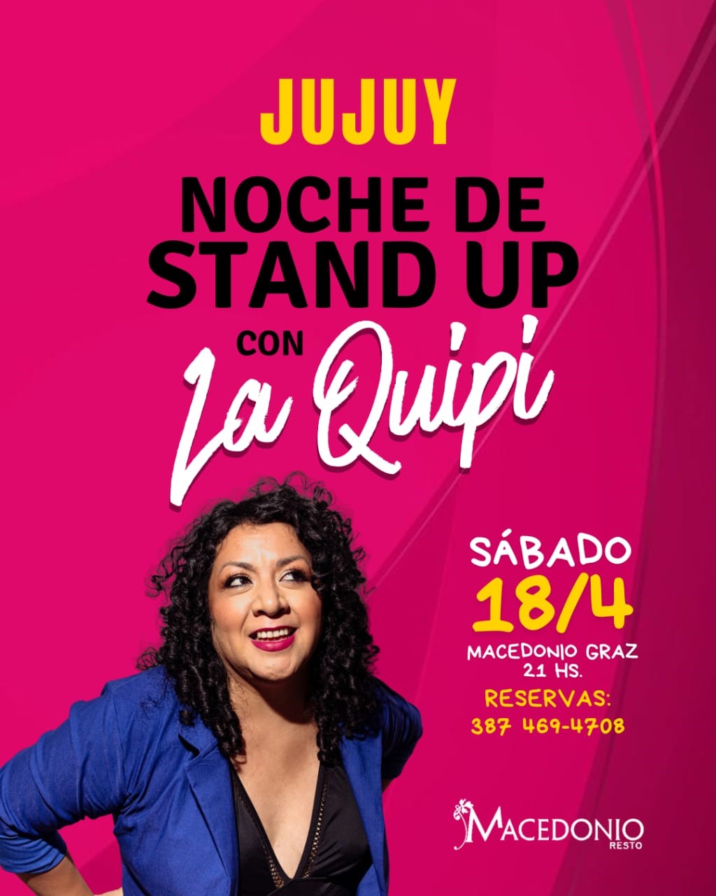 La comediante salteña, referente del stand up del NOA, presenta su show de comedia en Jujuy, podes venir con tu grupo en una noche para reírse fuerte con las ocurrencias de La Quipi.