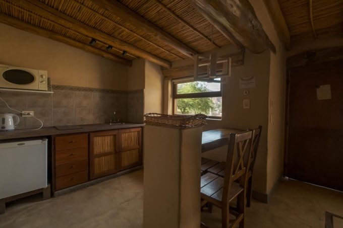 Las cabañas cuentan con un equipamientos tales como vajilla, frigobar, anafe, microondas, wifi, secador de pelo y tv por cable.Cuenta con baño y ante-baño, habitación para dos personas conectada visualmente con una sala de estar, con cocina integrada, donde se ubica también un sofá cama para los huéspedes restantes. Por otro lado dispone de calefacción central y hogar a leña, abarcando una superficie de 35m2.