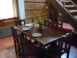 Cabañas de troncos, con uno o dos dormitorios, baño, cocina, comedor. Calefacción a leña y agua caliente 24 hs.