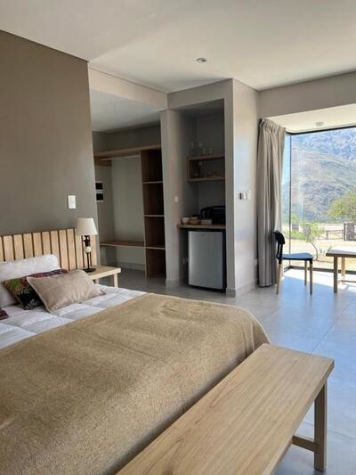 Establecimiento de Alquiler Turístico – disponibilidad para dos y tres personas, baño privado, sala de estar, cocina, juego de jardín, parrilla, TV, WIFI, parking, vista panorámica, servicio de limpieza, heladera, horno eléctrico, vajilla, calefacción, desayuno incluido. Cuenta con una Casa de Te.